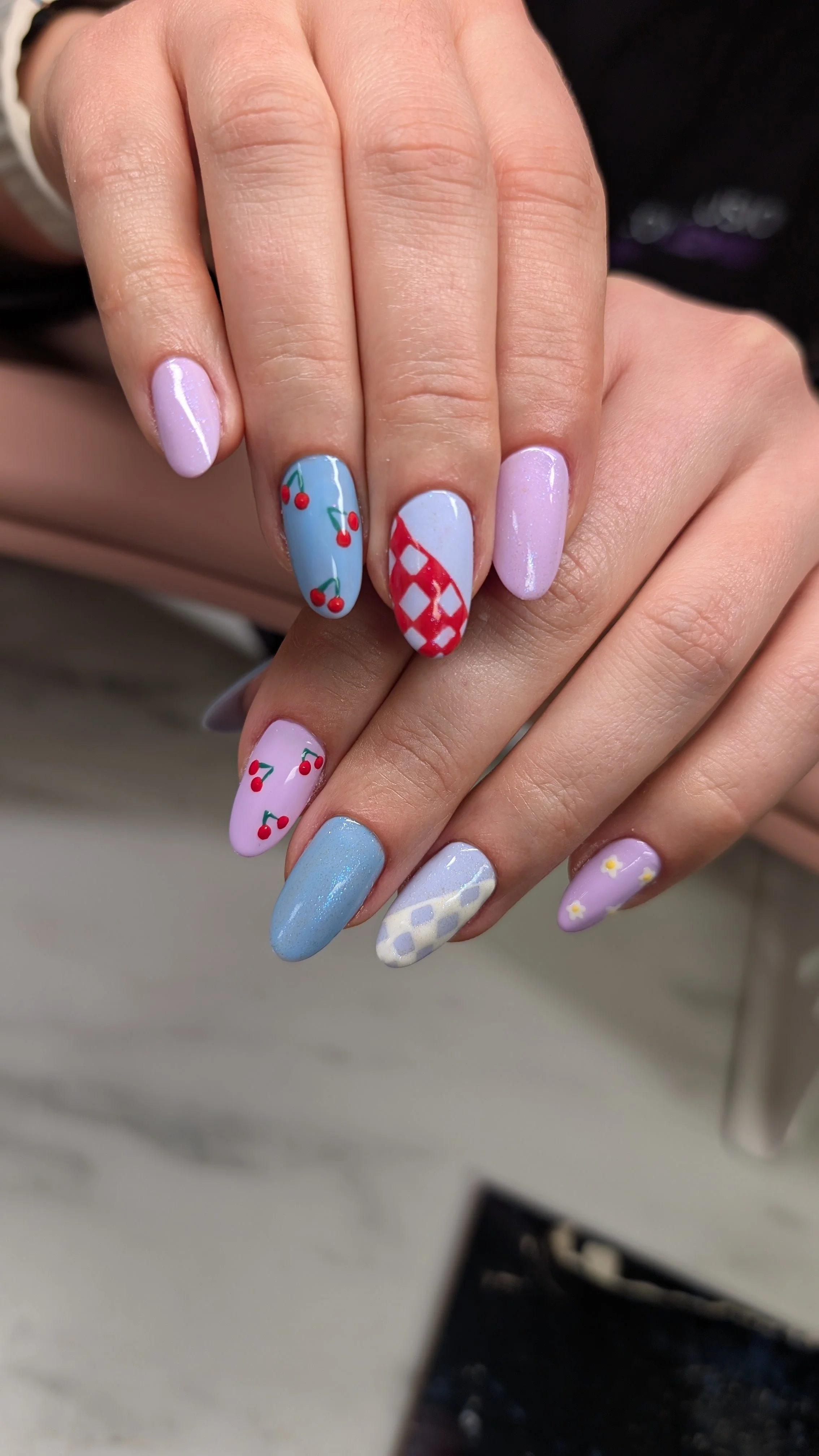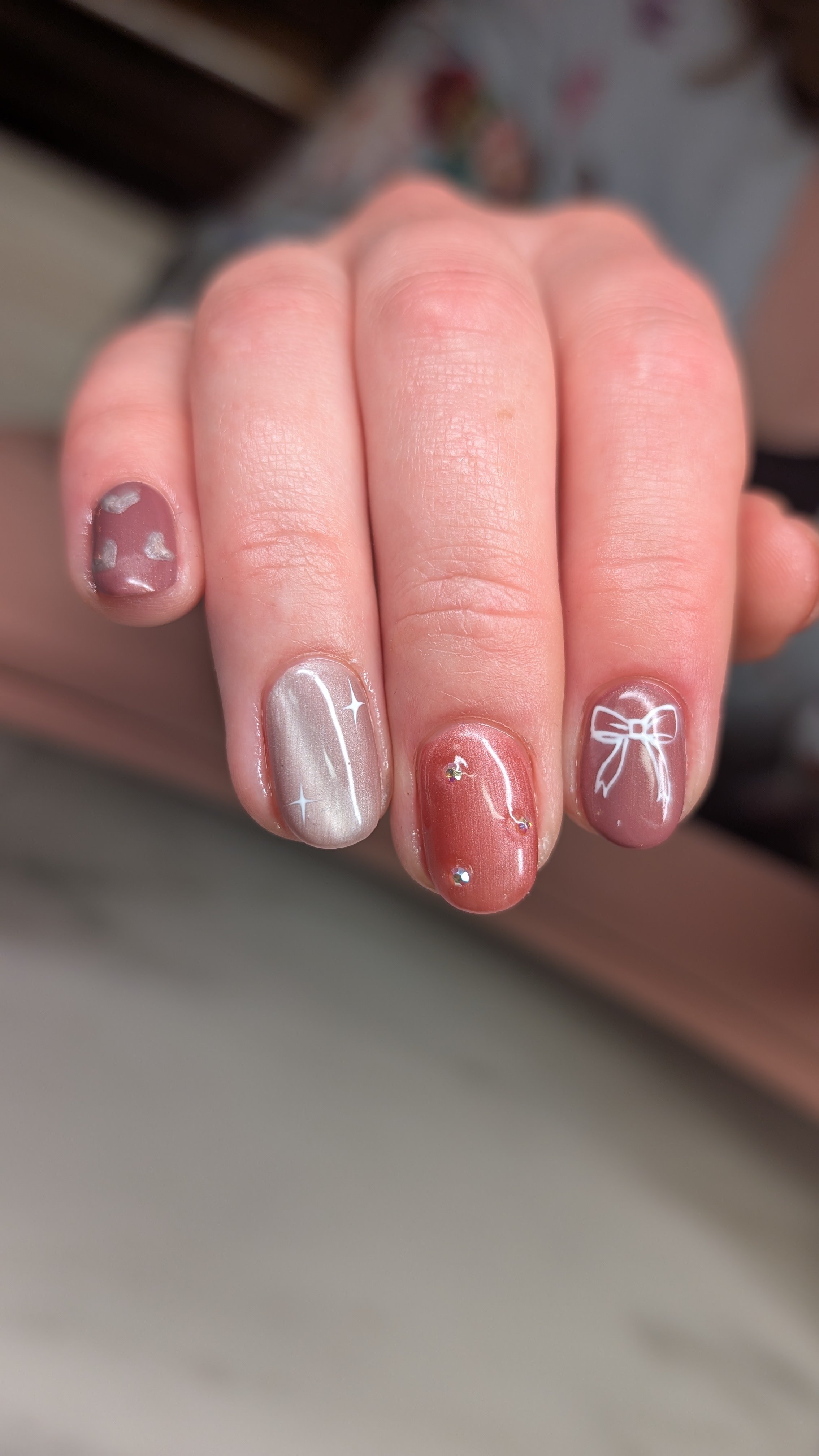 30 min €28,- Zilver: verschillende designs op enkele nagels
